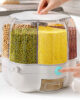 This transparent classified rice bucket features 6-grid storage and one-button pressing for getting food.
