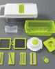 The vegetable chopper slicer contains two different sizes of chopping blades and 5 interchangeable blades, which can be used for slicing, cutting into large or small pieces, thick or thin Cut into thin slices and cut into thin slices, the vegetable chopper only needs multifunctional kitchen tools to provide various kitchen tool functions. Among all household kitchen tools, this 10-piece set is destined to become your favorite vegetable chopper
